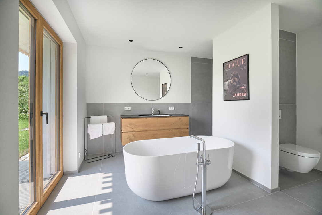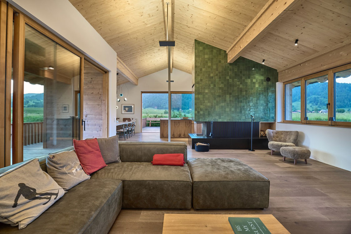 Die Nähe zur Natur – mit Lofer, Loipe und Wanderwegen direkt am Grundstück – prägt das architektonische Konzept: Offenheit, Klarheit und der Dialog zwischen gebautem Raum und Landschaft.