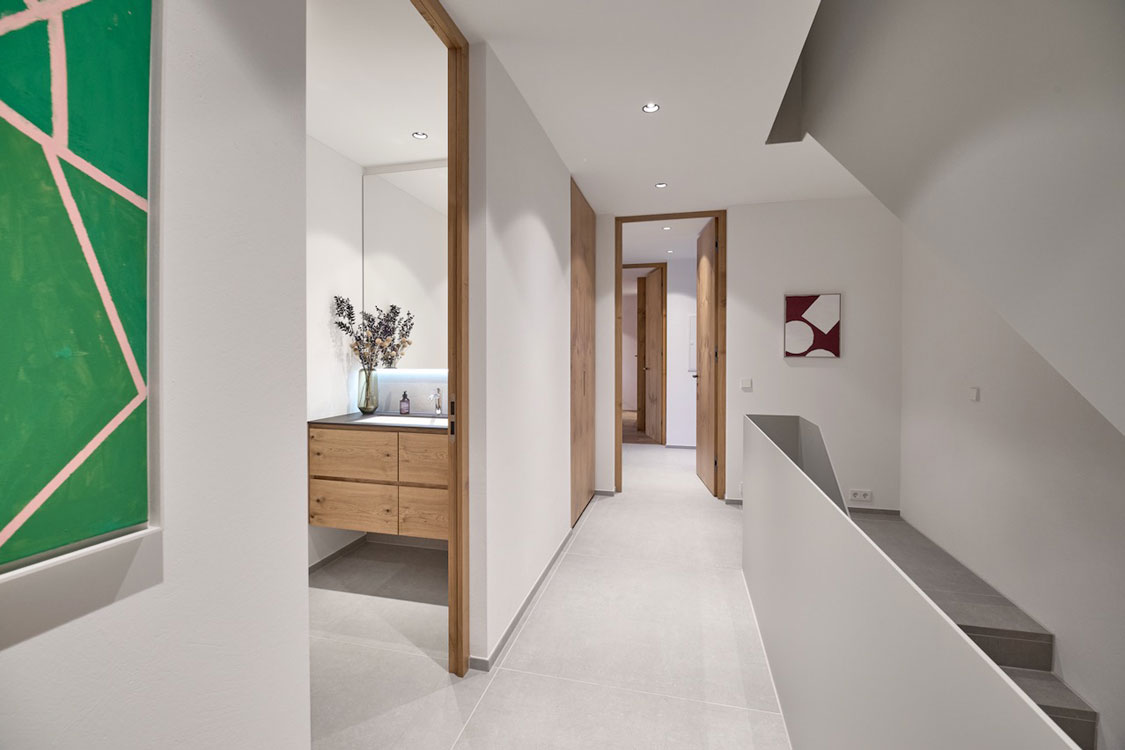 Das Haus fügt sich ruhig in sein Umfeld ein und entwickelt zugleich eine eigenständige architektonische Identität.